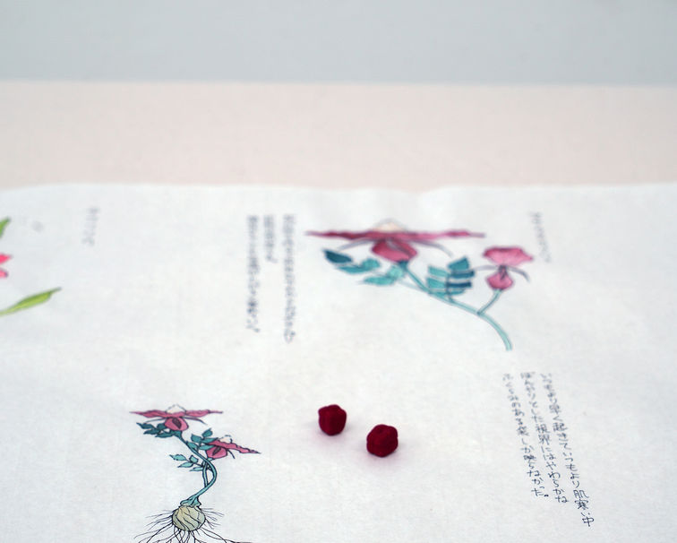 心残りのような思い出を元に花を創造した。その過去を経て今の自分がある、その影響を受け作品作りをしている、それが生きる上でなにかの根幹に関わっている、というような大きなものでは無く、なんとなくずっと覚えていて心に残り続けているような、つっかかっているようなものを題材にした。